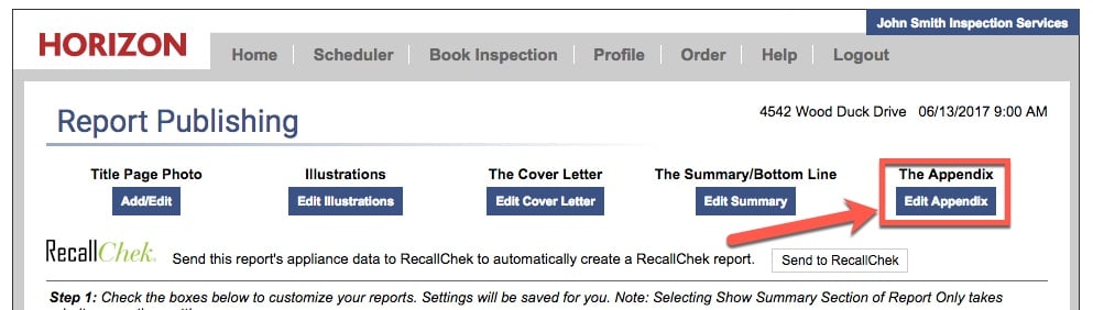 1) From the Report Publishing page of your report, click on the Edit Appendix button.