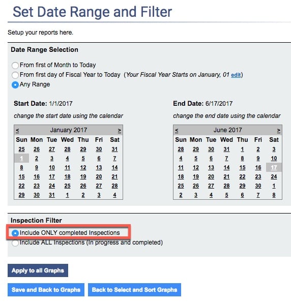 1) You can click Include Only Completed Inspections in your reports, or include Inspections In Progress as well.