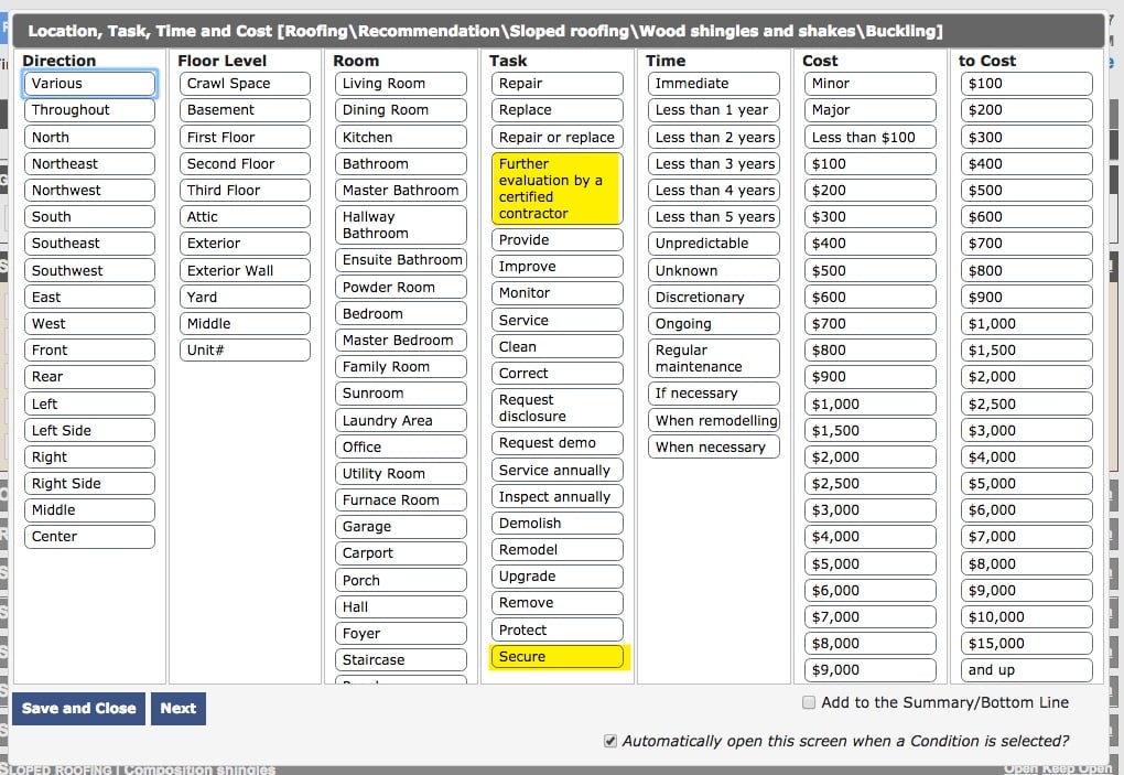 2) Select a heading. We’ve selected Task in the image below to show the items available.