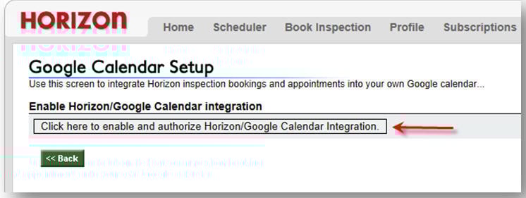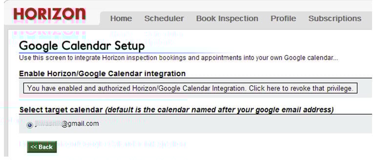 Horizon/Google calendar integration works as a one-way pushing your scheduled Horizon inspections to your Google Calendar.