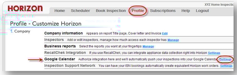 5. Log into Horizon and click Profile, then click Google Calendar\Settings. (Figure 2)