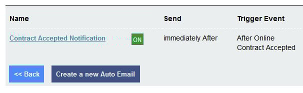 Event that Triggers the Email: Choose 'After Online Contract Accepted'
