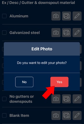 NOTE: If the photo edit prompt is set to "Off" in your Home Settings, you will NOT receive the prompt and will need to select the "Photo Edit" icon in the Notes section