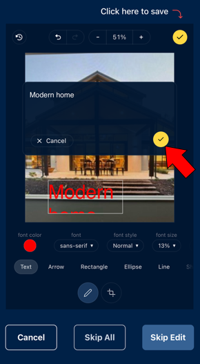 10. Once you are satisfied with your text, select the "yellow checkmark" located at the bottom right of the text box.