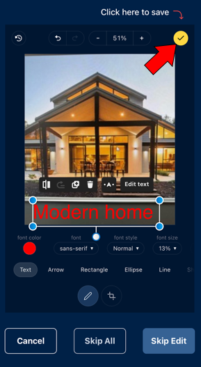 13. Once you are satisfied with all text updates made to the image, select the "Yellow Check Mark" at the top right of the editor to save your photo edits.