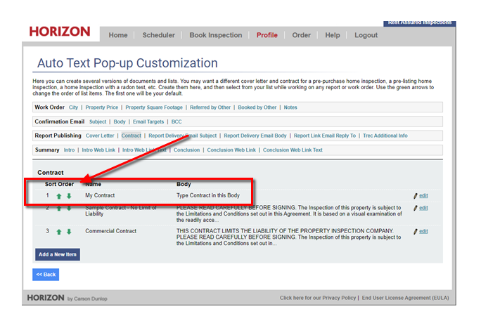 *NOTE: If you have multiple contracts, set the contact you wish to use in the number 1 position to use that contract in your report.