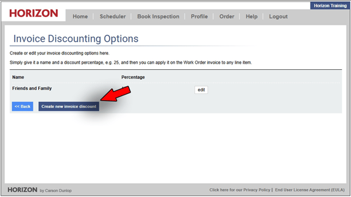 → Confirm the Name and Discount Percentage are filled out accordingly.