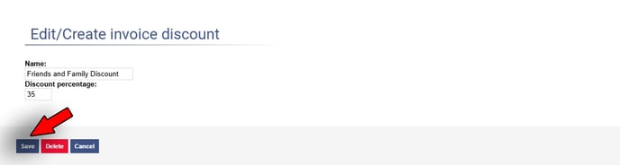Step 5: Once you are satisfied with your Name and Discount Percentage, select “Save”.