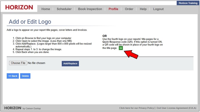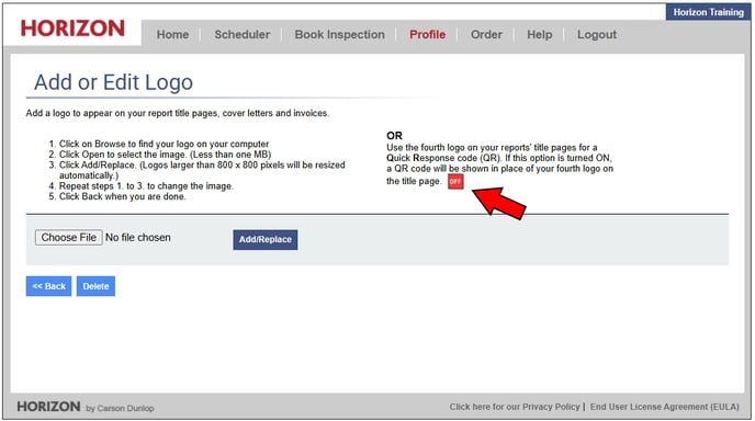 → The logo that appears after selecting Add/Replace will display your new logo.