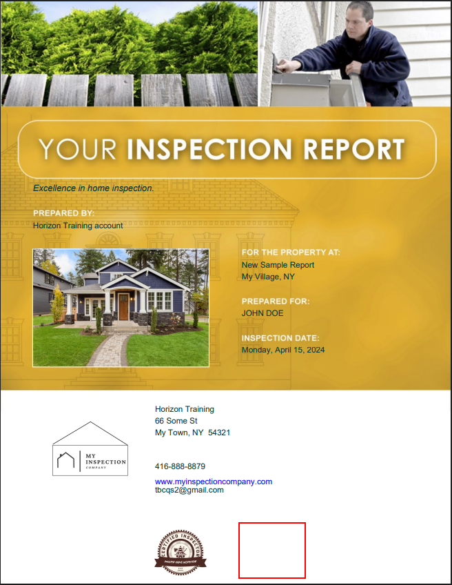 5. Now when you preview an inspection or generate the report, you will see the QR Code at the bottom of the Title Page is no longer there.