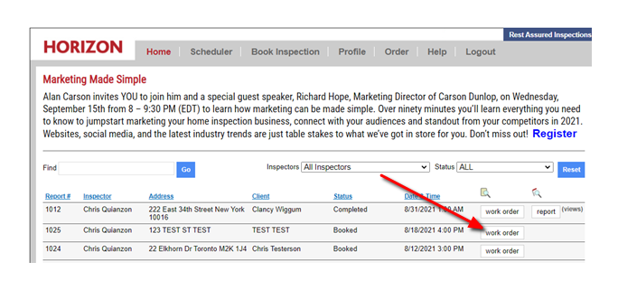 - In Horizon, select on the “Work Order” you wish to Edit.