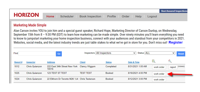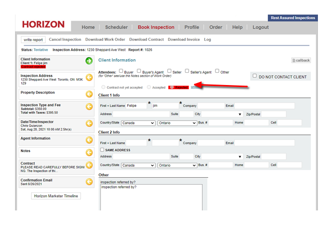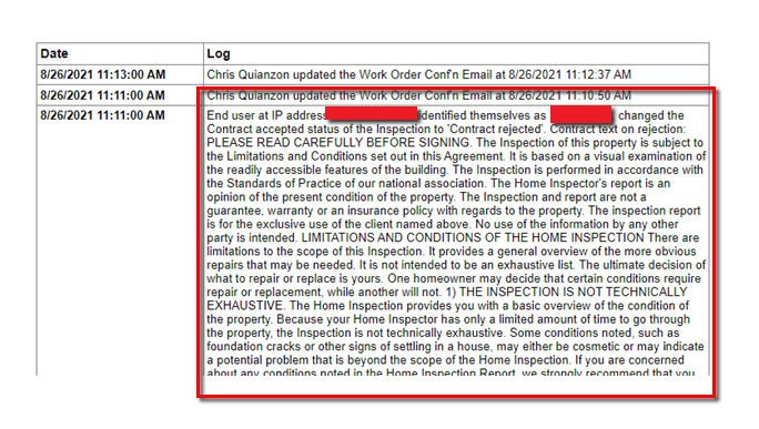 If the contract gets rejected, the status of the work order updates showing as rejected.