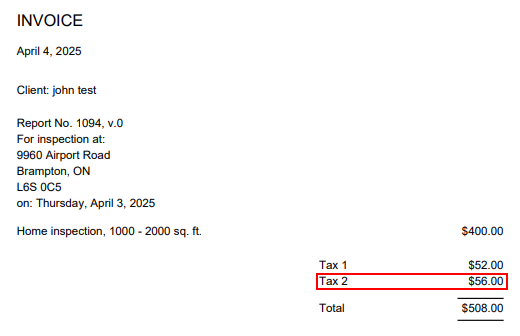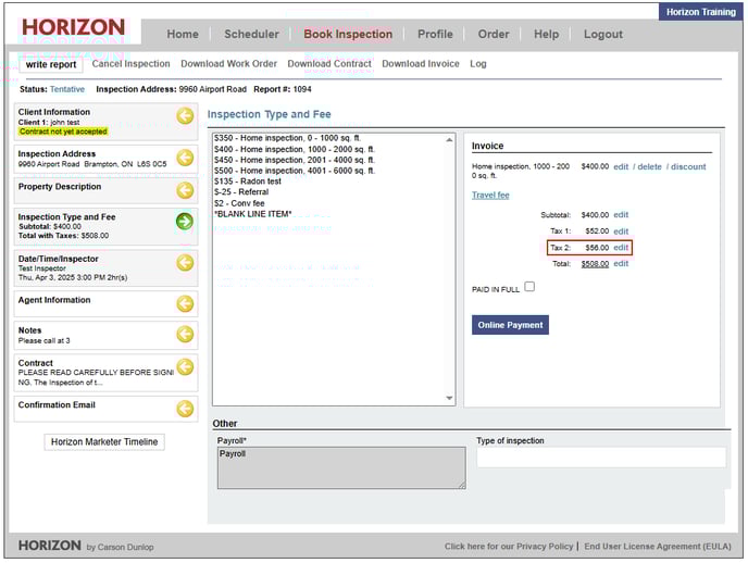 NOTE: Now when you view the "Inspection Type and Fee" and the invoice you will see the 2nd tax rule:
