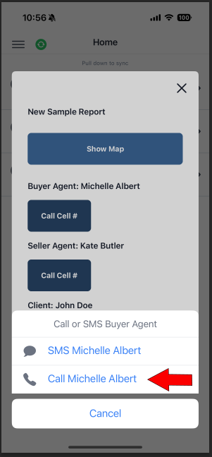 → There must be a phone number in the client's information or a phone number associated with the agent to ensure that the button to "Call Cell #" is available.