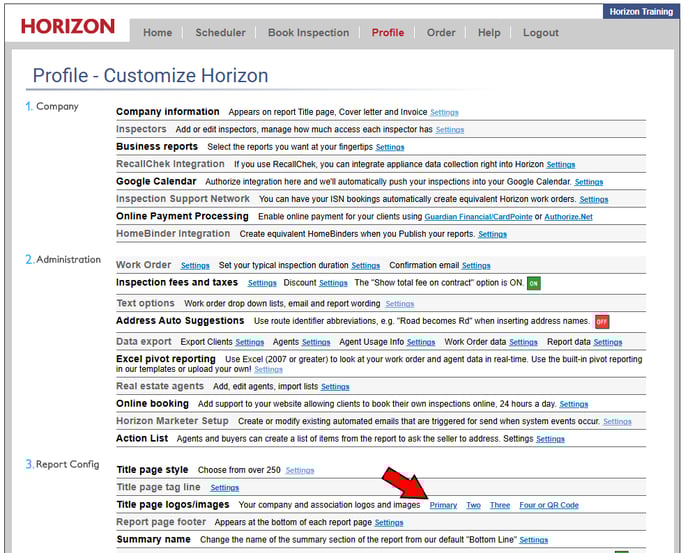 Step 2. Under the "Report Config" Select "Primary" beside "Title Page Logos/Images.
