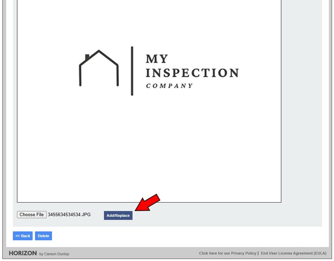 → The logo that appears after selecting Add/Replace will display your new logo.
