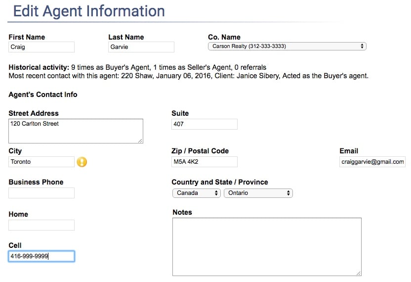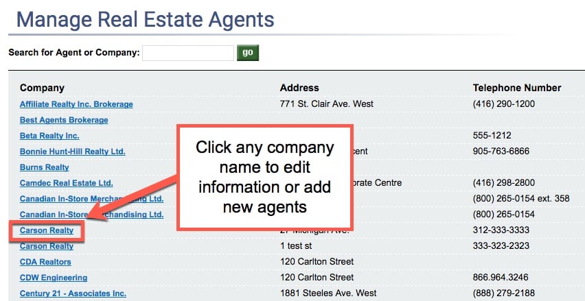 6) We also get a list of agents associated with that company. Click on an Agent's name to edit their details.