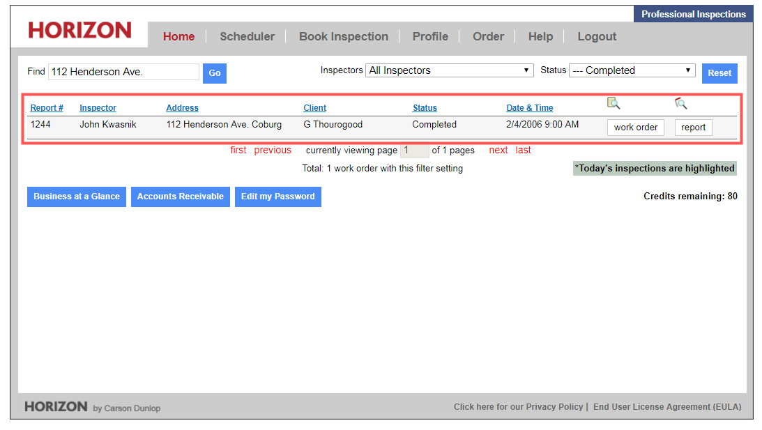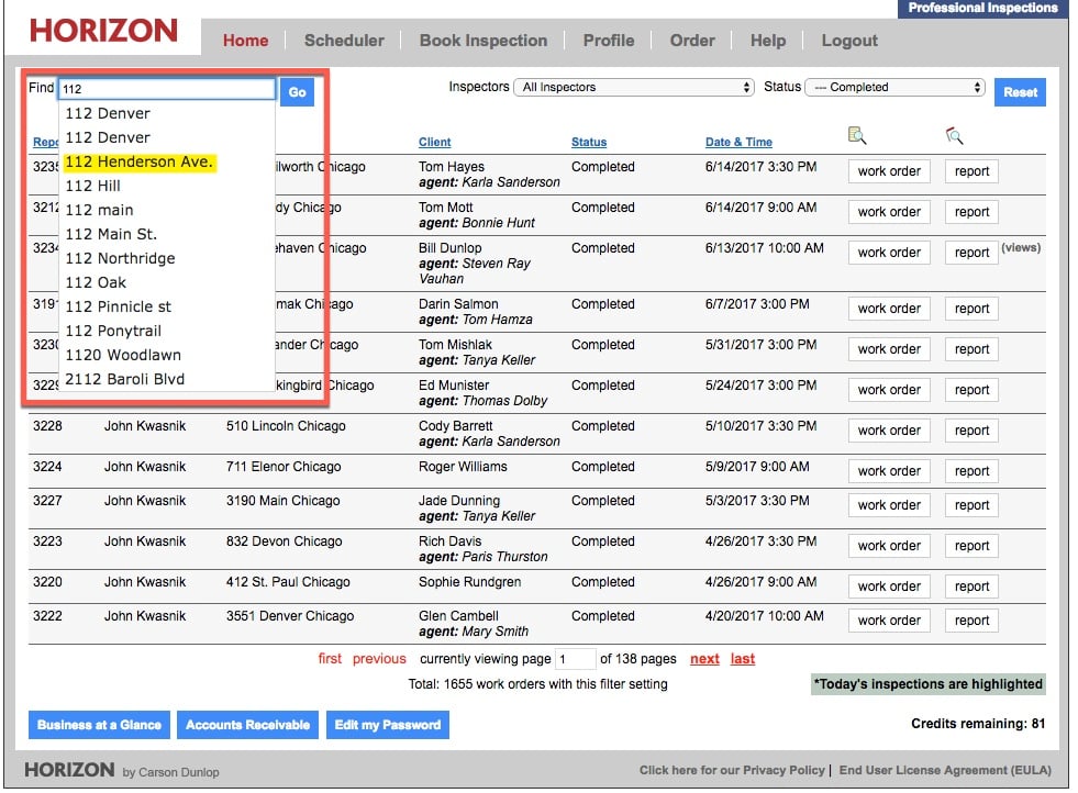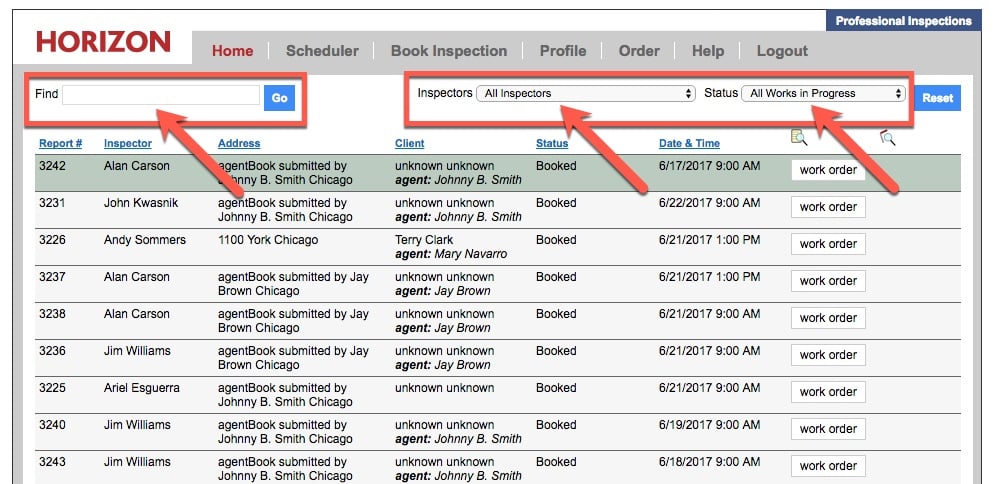 Inspectors: Horizon allows you to search all reports by a specific inspector.