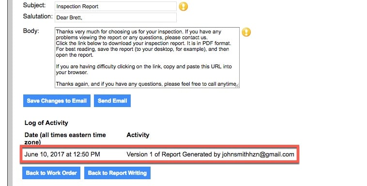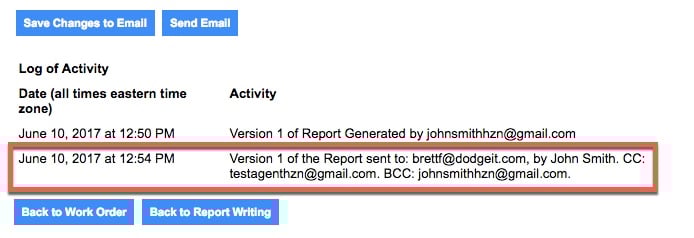 Version 1 of the Report has been sent to the client – Brett Freeman, and a blind carbon copy (BCC) was sent to the Inspector. The Agent has also been CC'd.