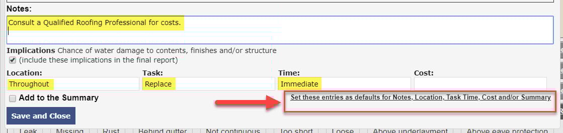 For example, if the Asphalt Shingle Roof is Worn out, you can set Location: Throughout, Task: Replace, Time: Immediate
