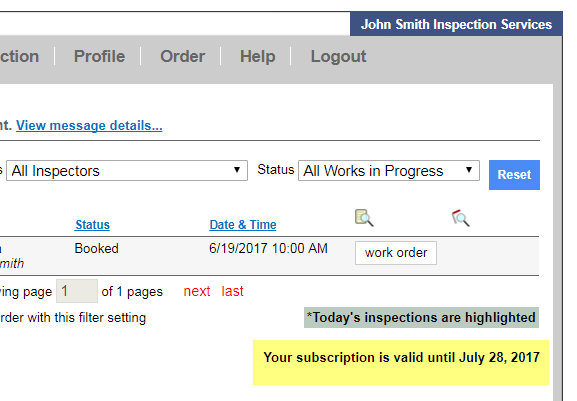 Why can't I book an inspection? A subscription is required to book inspections in Horizon. You can check to see if you have remaining subscription time the Horizon Home screen at the bottom right corner: