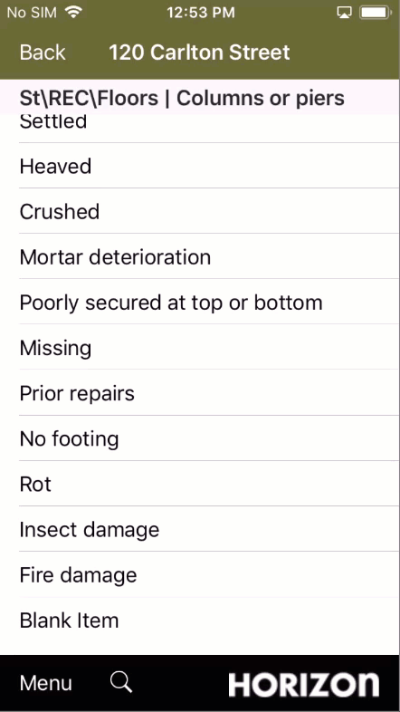 Horizon Mobile allows you to take photos that attach to the right spot in the report. We suggest putting in the defect and taking the photo while you're in the crawlspace. You can add Location, Task, Time and Notes later. If you don't want to bother finding the report item while you're in a crawlspace (which I get!), you can just use your phone camera to grab shots and then import them from your phone’s photo Gallery into Horizon later.