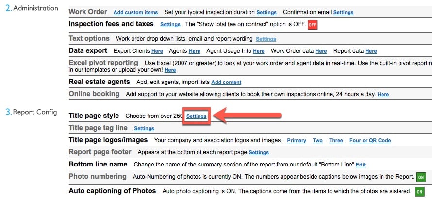 2) Click on Settings beside the section Title Page Style.
