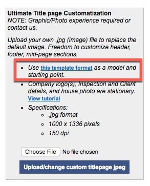 7) Click Upload/change custom titlepage .jpg.